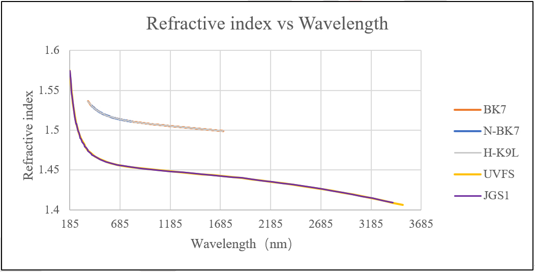 常见牌号光学玻璃的折射率曲线